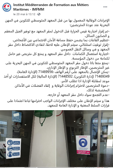 By dustrial 26 mai 2020 les mesures de protection contre le corona virus Dans le cadre de la protection contre le corona virus, l’institut Méditerranéen de Formation aux métiers Maritimes a le