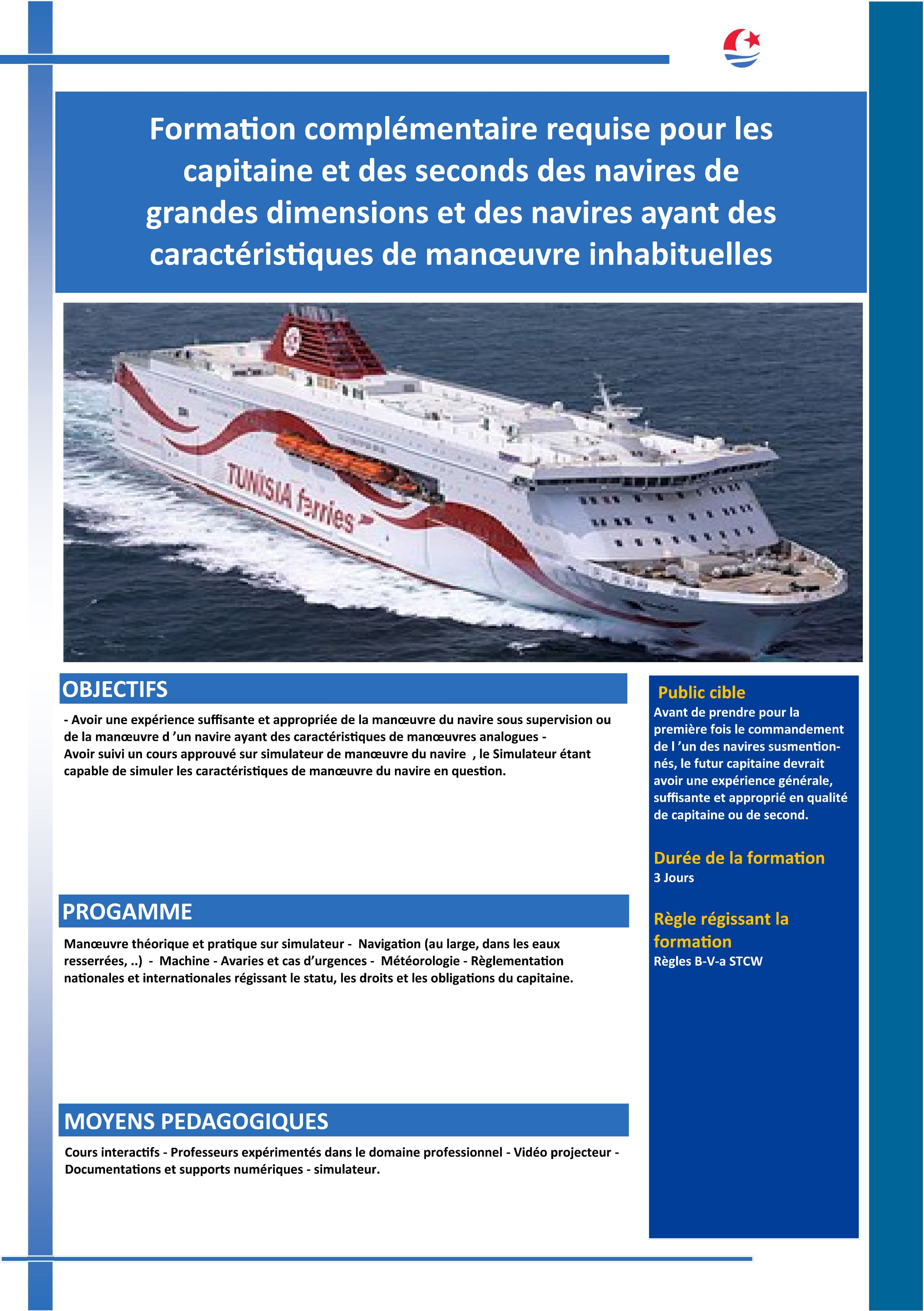 Formation complémentaire requise pour les capitaines et les seconds navires de grandes dimensions et ayant des caractéristiques de manœuvre inhabituelles