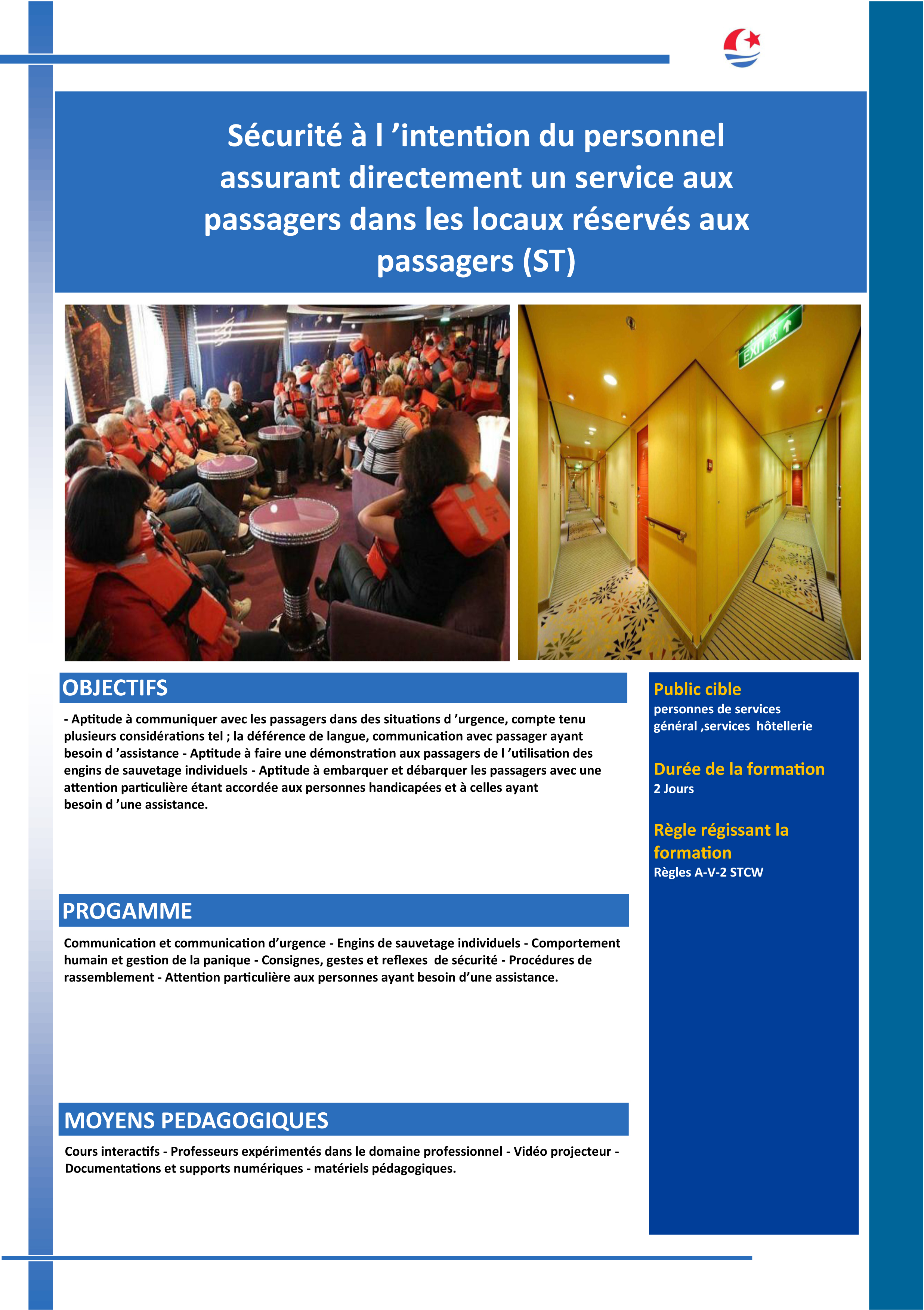 Formation en matière de sécurité à l’intention du personnel assurant directement un service dans les locaux réservés aux passagers (ST).
